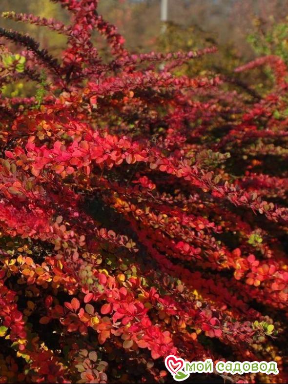 Барбарис тунберга Грин Карпет (Berberis thunbergii Green Carpet) — небольшой кустарник, высотой до 1 м, и диаметром кроны 1,5 м. Крона подушковидная, раскидистой, с большими годовыми приростами и листьями, летом насыщенно светло-зелеными, а осенью оранжево-желтыми, плотная, с поникающими раскидистыми побегами. Кустарник широкий, расплющенный. Кора коричнево-желтая. Шипы трехраздельные. Цветет в конце мая — начале июня. Цветки одиночные или собраны в соцветия по несколько штук (2-5), внутри желтые снаружи красные, расположены по всему побегу. Плоды продолговатые, блестящие, многочисленные, розовые или красные, созревают в сентябре. Украшают куст после опадания листвы, иногда сохраняясь на нем всю зиму. Светолюбив, но выносит полутень. Засухо- и жароустойчив. К плодородию почв нетребователен. Любит щелочные почвы. Не выносит застойного увлажнения. Хорошо переносит городские условия. Устойчив к болезням и вредителям.